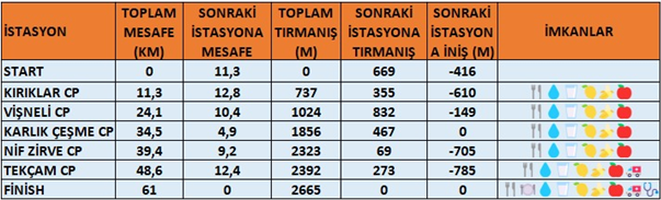Katılımcıların parkuru 11 saat içerisinde tamamlamaları gerekmektedir.